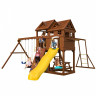 Детский городок изготовлен из северной древесины хвойных пород, обработанной безопасной декоративно-защитной пропиткой. Технология значительно увеличивает срок службы конструкций, повышает прочность древесины, защищает её от гниения и грибков. Обработка придаёт дереву приятный оттенок, проявляет и подчёркивает его текстуру. Используемая пропитка не содержит токсичных компонентов, экологична и абсолютно безопасна для ребёнка. Состав прошёл санитарно-эпидемиологическую экспертизу в Центре гигиены и эпидемиологии в г. Гатчине.