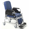 Многофункциональный стул оснащен удлиненными пластиковыми подлокотниками регулируемыми по высоте, высокопрочной рамой  на четырех ножках. Для изготовления удобного анатомического профильного сидения используется специальный материал, способный принимать форму тела человека в прочной и приятной обивке из кожзаменителя. Угол наклона спинки можно регулировать как сопровождающему лицу, так и самостоятельно пользователем с помощью газовых пружин на 45º, мягкая подножка соответственно регулируется вместе со спинкой автоматически. Данная модель имеет  ряд  опций, которые можно заказать дополнительно по желанию клиента, такие как столик , регулируемый съемный подголовник,широкие подлокотники, убираемые в сторону, регулируемые по высоте ножки или мобильную раму на четырех колесах, которые позволяют пользователю чувствовать себя достаточно комфортно и уверенно, пользуясь данным изделием.  Доступный в широком диапазоне различных цветов и различных вариантов комплектации гериатрический стул легко впишется в любой интерьер.