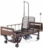 Медицинская кровать Интегра Электро для домашнего ухода, снабжённая электроприводными регулировками положения четырёхсекционного ложа и оригинально реализованной функцией кардио-кресло, представляющей из себя не только статичное полулежачее положение для бодрствования и терапии кардио-заболеваний, но и независимо выдвигающуюся из торца кровати, оборудованную электрическим санитарным устройством каталку для перемещения больного, с электроприводной регулировкой наклона спинки*.