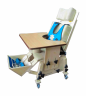 Модифицированная опора с коленоупорами, которые устанавливаются на различную ширину. Разведение может быть достигнуто при постепенном выведении и с использованием регулировки. Регулируется по высоте. В комплект входит стол с регулируемым углом наклона. Торс фиксируется корсетом. Опору рекомендуется использовать вместе с любым столом, который будет служить опорой для рук, позволит избегать наклона ребенка вперед, препятствует формированию сколиоза и для развития мелкой моторики. Торс фиксируется корсетом.